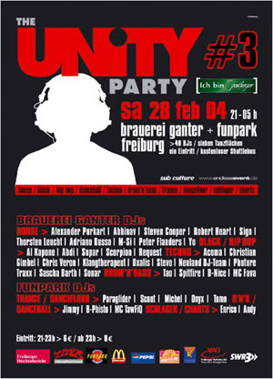 28.02.04 UNITY PARTY # 3 @ BRAUEREI GANTER + FUNPARK in Freiburg |